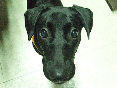 小狗蹲在門口,牠那無辜的眼神盯著我一直看,還真