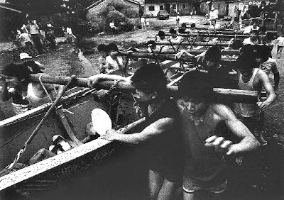 爸的作品取材於礁溪鄉的二龍競渡,原是平埔族葛瑪蘭人慶祝豐收的習俗.由於時代背景及宗教因素漸轉型為紀念性的活動,但仍有別於台灣其他地區應景的節令運動.二龍競渡的習俗相傳已有兩百多年,同時也是台灣最具鄉土文化的活動.幾乎每年為了拍攝二龍競渡,爸都沒在家陪我們吃粽子.現在才曉得回味欣賞他的作品.創作的確是一條孤獨的路.