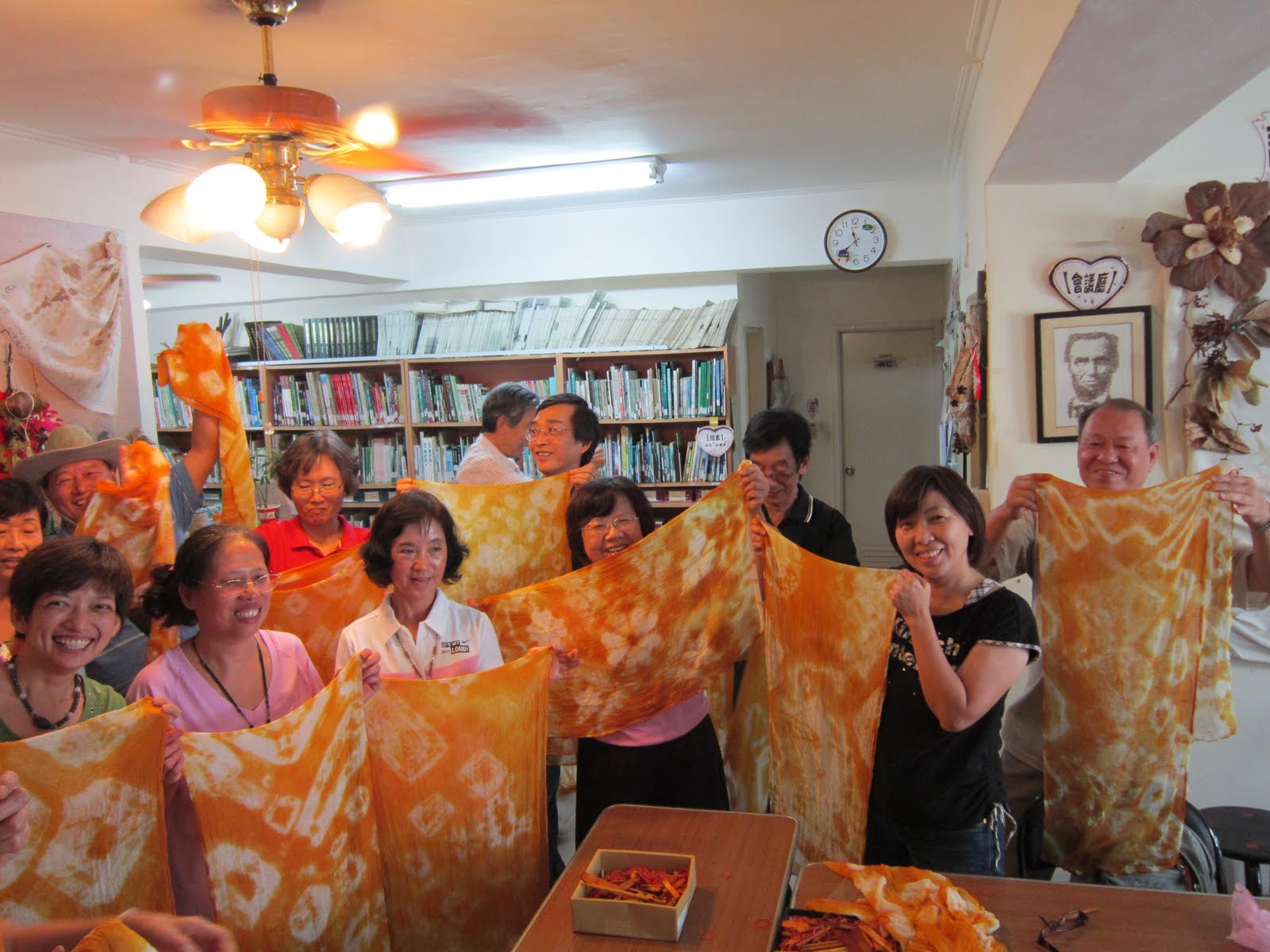 那是老師送導師的作品,用大洋蔥染的,洗了幾次後有點褪色.
